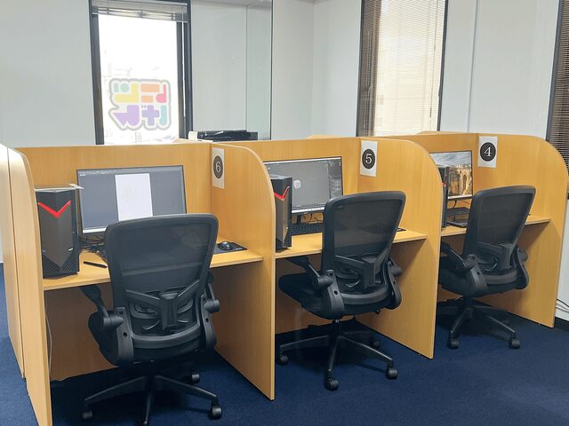 液タブ、ペンタブ、ゲーミングPC等、専門の機材も多数用意しています。初めて使う方でも1から学んでいただけますので、どんどんスキルアップが可能です!学習で皆さんにご用意いただくものは【やりたいと思う気持ち】です!