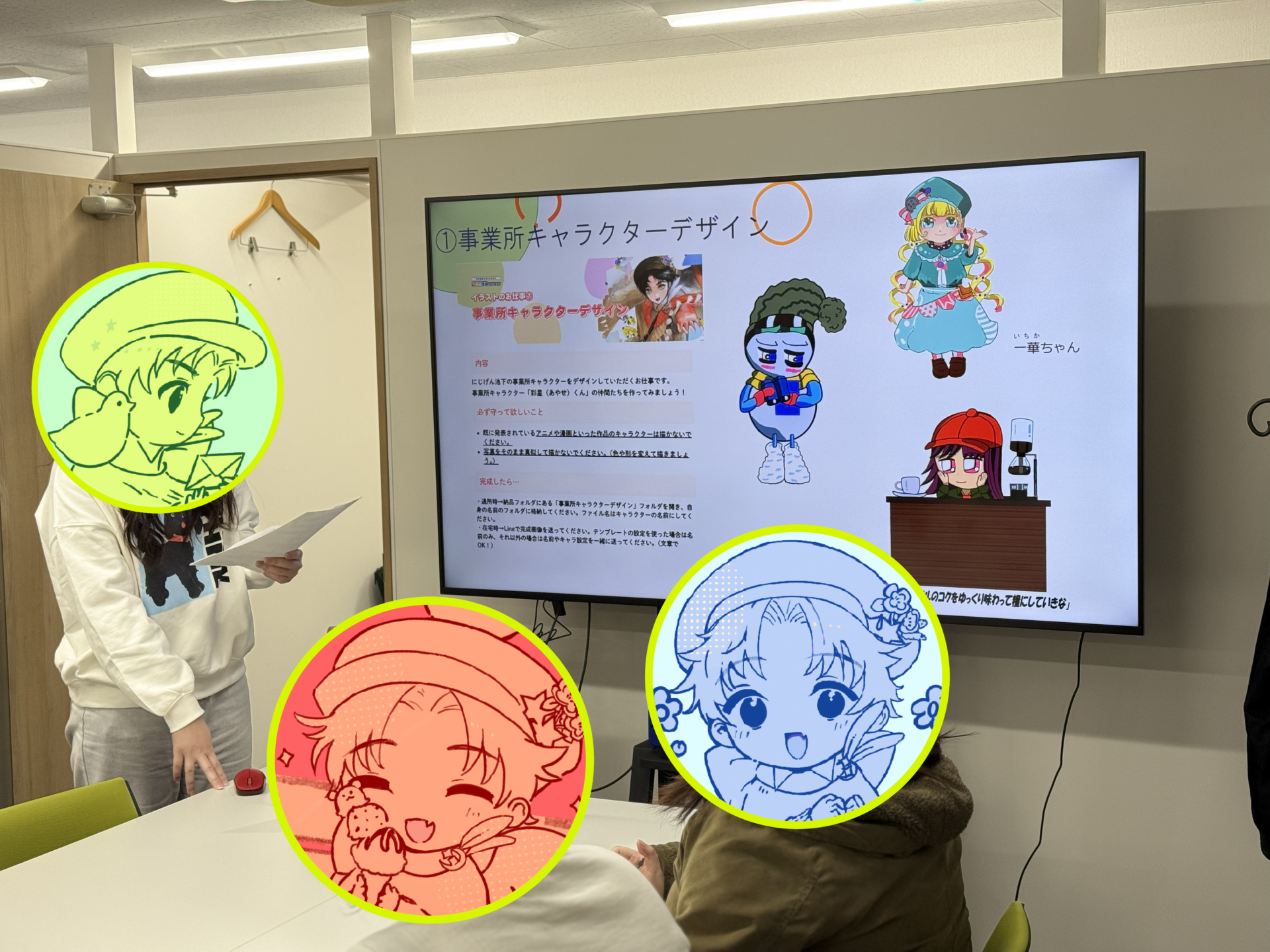 席に着いたら最初の5分は職員からイラスト仕事の紹介まとめ案内がありました。