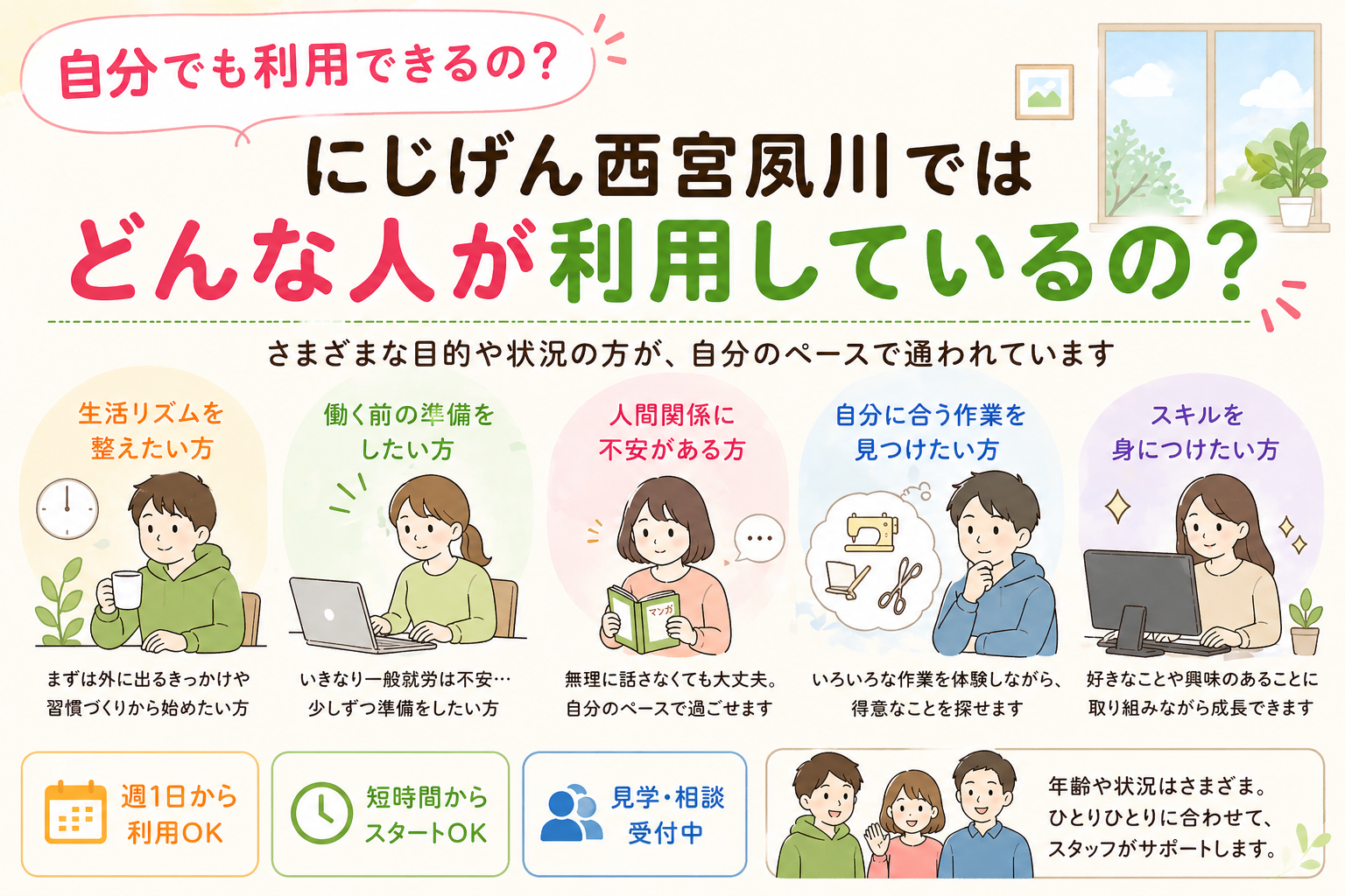 利用を考えているご本人はもちろん、ご家族・支援者の方にも参考にしていただければ幸いです。