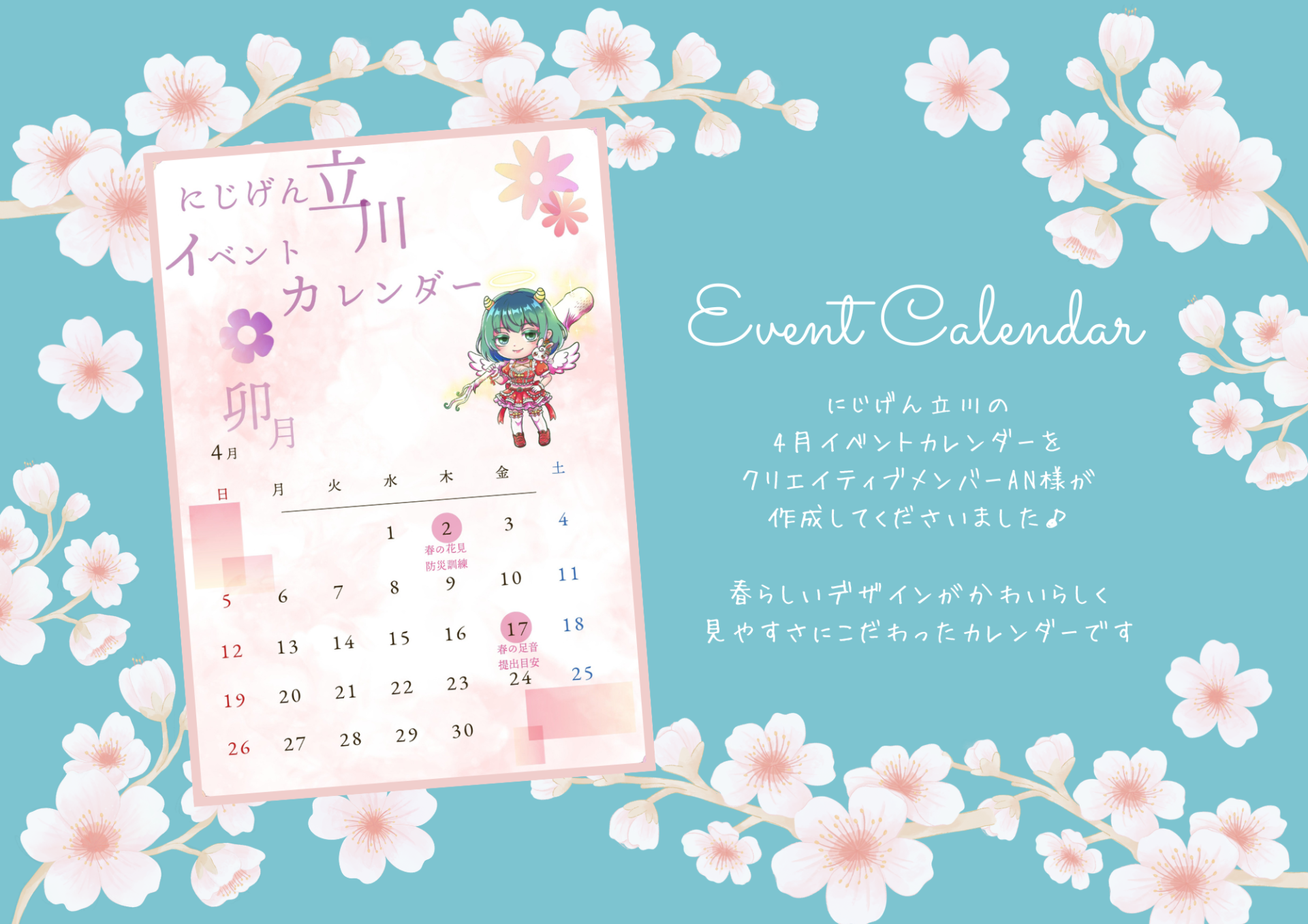 とても素敵な4月のイベントカレンダーを制作してくださいました✨
