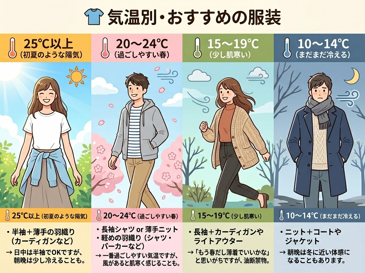 → 「もう春だし薄着でいいかな」と思いがちですが、油断禁物。